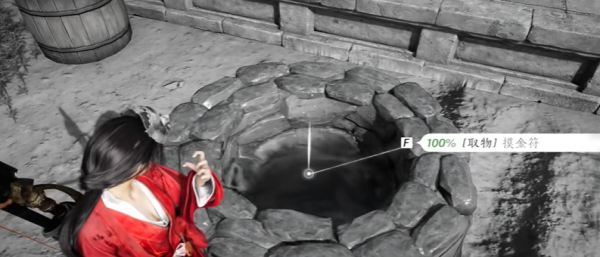3、结束对话后,来到水井这里使用技能拾取摸金符。